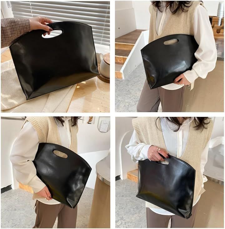 ノーブランド品 PC ケース PU レザー 薄型 ビジネス バッグ クラッチ A4 対応 軽量 防水 通勤 (ブラック)