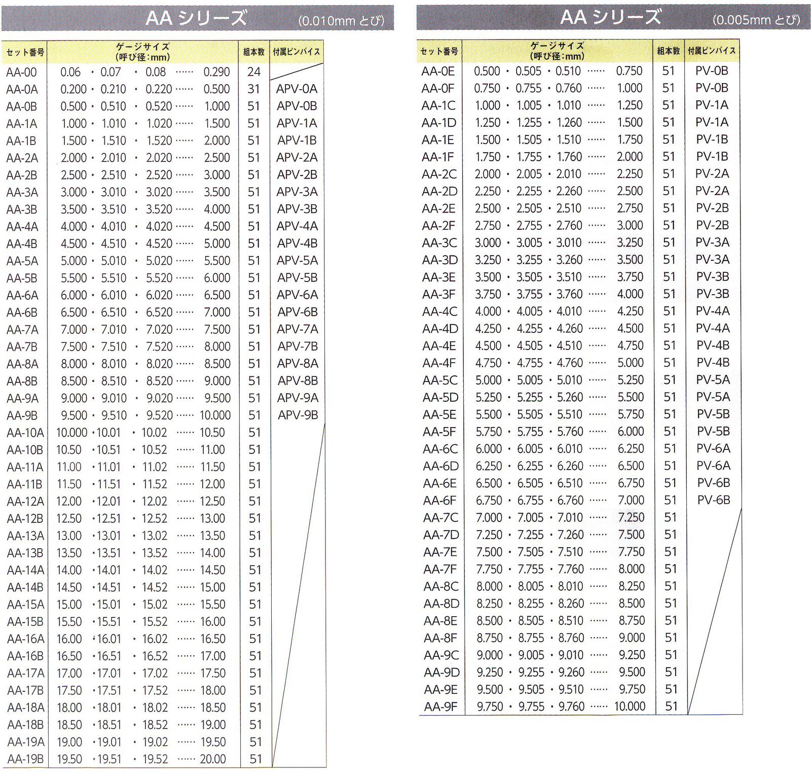 1.000mm以上はピンゲージに呼び寸法を印字してあります。