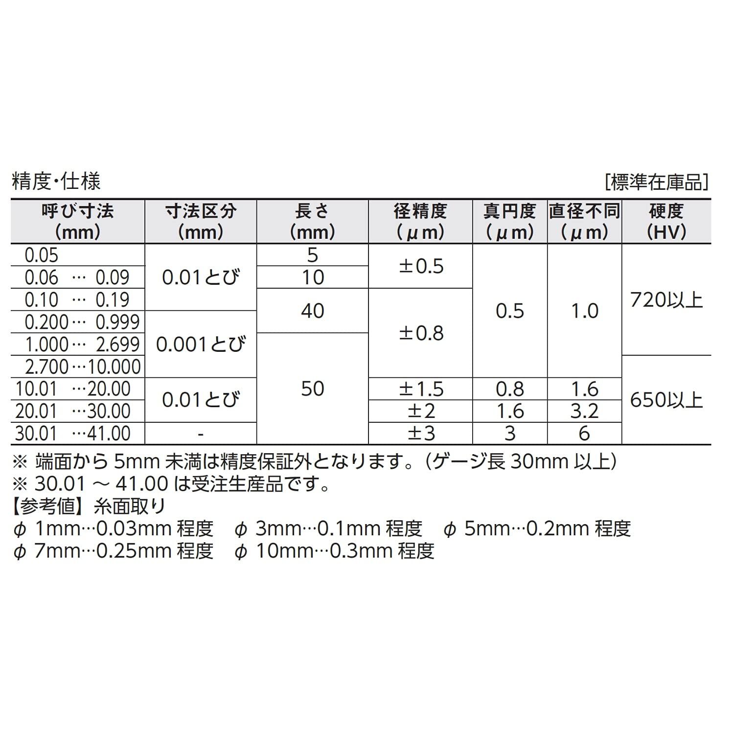 真円度・円筒度(μm) : 0.5