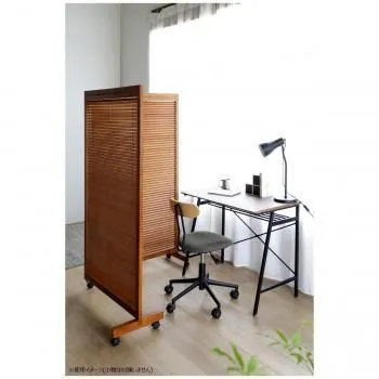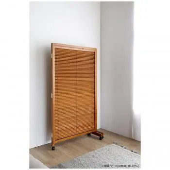 ブラインドを開閉する事で彩光と通気が調節できるロングセラーのパーティション。和室にも洋室にもコーディネートできるシンプルなデザインです。キャスター付きで移動が楽な2連タイプで、座ると全身が隠れて、立つと周りが見える高さです。幕部はブラインドのように開閉可能です。丁番は片側に180度開閉可能です。