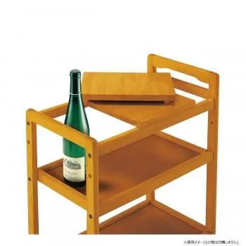 背の高い瓶やポットなどをを運ぶ際に便利な、天板2分割式のワゴン。中段は2段階の高さ調節が可能です。
