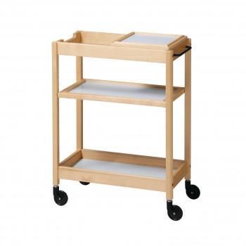 特徴的なキャスターやハンドルがさりげなく存在感を放つ木製マルチワゴンです。トレー付のワゴンです。