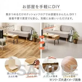 敷くだけで簡単に床の色を変えられるクッションフロアです。お部屋の雰囲気がガラリと変えられるので気軽に模様替えができ、床への傷や汚れ防止にもなります。1枚の幅が約91cmずつにカットされているので扱いやすく、つなぎ合わせて敷き詰めるだけなので設置も簡単です。やわらかい素材でカットしやすく、スペースにあわせてお使いいただけます。