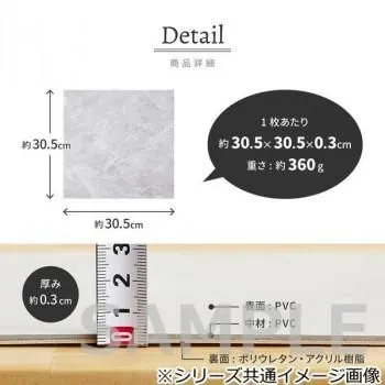 ■ラッピング(包装)対応不可です。 貼ってはがせて、何度も繰り返し使えるフロアタイルです。フィルムをはがして、床の上から貼るだけでお部屋を簡単にイメージチェンジできます。賃貸や新築の床への汚れや傷の防止にもおすすめです。キッチンや洗面所など水周りにも使えて、粘着が落ちても水で洗えば繰り返しご使用いただけます。カッターで簡単にカットでき、お部屋の形に合わせて敷き詰められます。 ※裏面の吸着部分に透明保護フィルムを貼っています。ご使用の際、はがしてお使いください。 サイズ1枚:約30.5×30.5cm、厚み約3mm(約1帖分:20枚) 個装サイズ:32.0×32.0×6.0cm 重量1枚:約360g 個装重量:7000g 素材・材質表面:PVC 中材:PVC 裏面:ポリウレタン・アクリル樹脂、透明保護フィルム セット内容20枚 生産国中国 fk094igrjs 置くだけの簡単リフォーム 商品番号:ab-2248869 ※代引き不可 同梱不可※北海道、沖縄、離島送料は別途お見積り。※手配完了後は、ご注文キャンセルを承る事が出来ません。何かございましたら事前にお問い合わせ下さい。