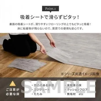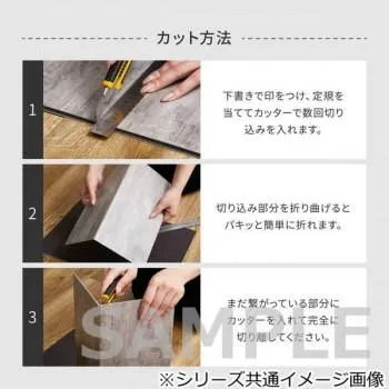 貼ってはがせて、何度も繰り返し使えるフロアタイルです。フィルムをはがして、床の上から貼るだけでお部屋を簡単にイメージチェンジできます。賃貸や新築の床への汚れや傷の防止にもおすすめです。キッチンや洗面所など水周りにも使えて、粘着が落ちても水で洗えば繰り返しご使用いただけます。カッターで簡単にカットでき、お部屋の形に合わせて敷き詰められます。