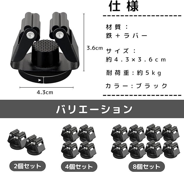 商品仕様:East Leaf モップホルダー8個セット 材質ABS樹脂+ネオジム磁石+シリコン カラー黒 サイズ約4.5x4.5x3cm 耐荷重約5kg