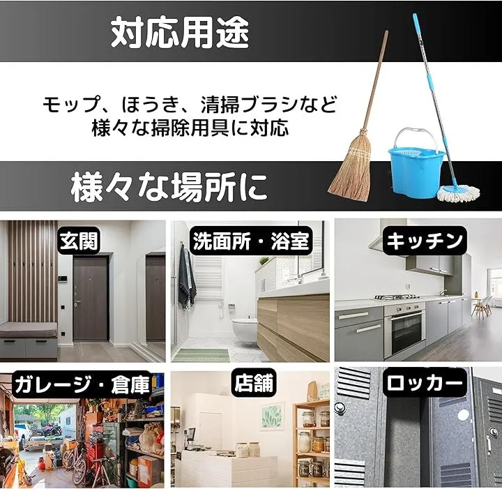 対応用途:モップ ほうき バケツ用棒 清掃ブラシなど様々な掃除用具に対応し整理整頓と時短掃除を実現