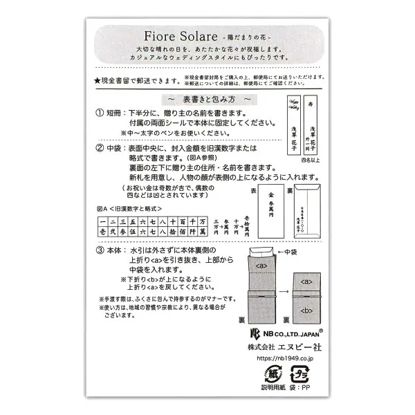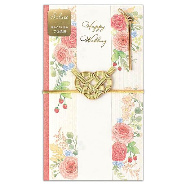 寿金封 ソラーレ ローサ 5859527 祝儀袋 短冊2種(Happy Wedding・寿) 中包み入 多当折 エヌビー社