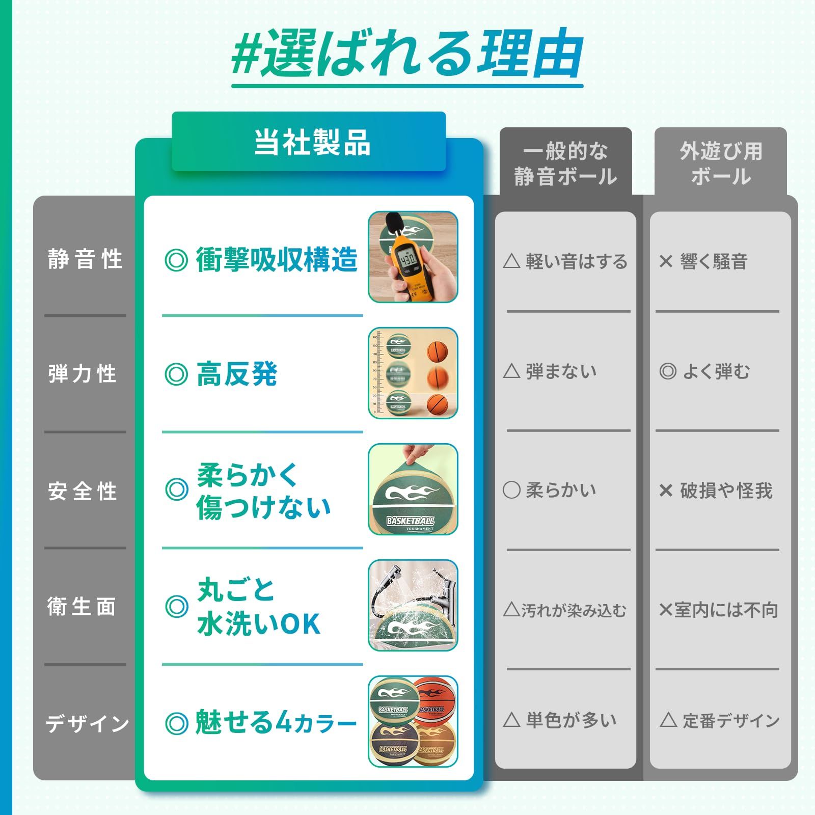 高弾力:静かなのに驚くほど弾む。強弱に素直に反応するリバウンド性能で、本格的なスキルアップをサポート。 ✅