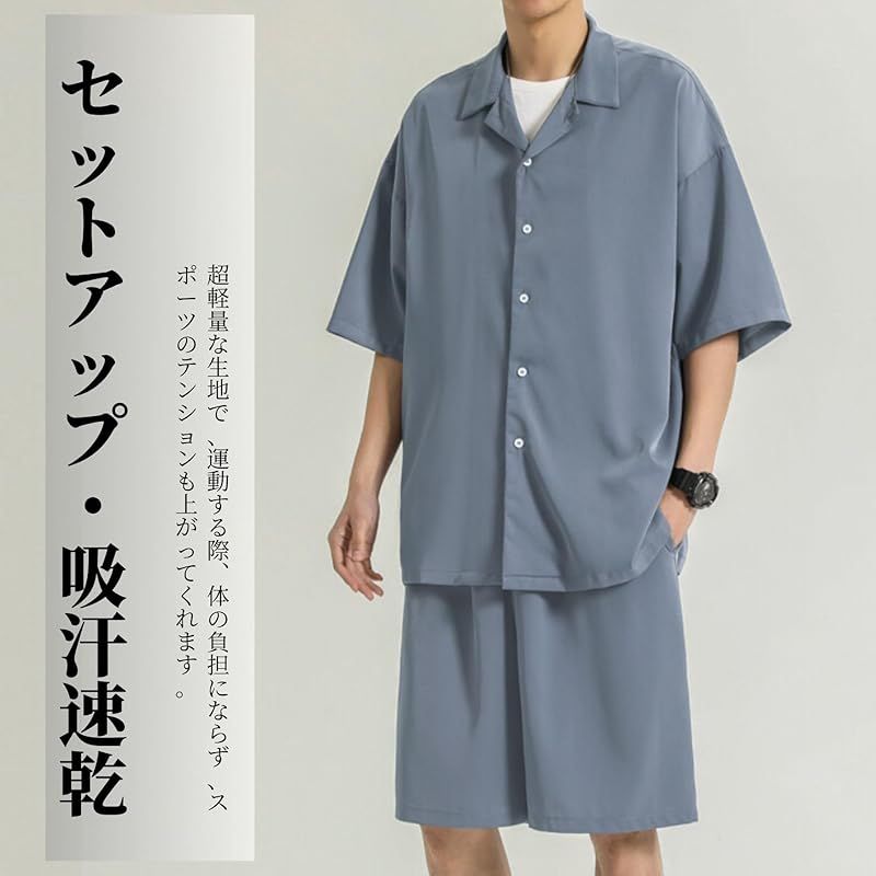 【商品詳細】 ブランド:Aaronlive 商品種別:メンズジャージ上下セット 商品名:[Aaronlive] シャツ メンズ 上下セット 夏 セットアップ 半袖 ハーフパンツ カジュアル 大きいサイズ トップス ショットパンツ 無地 通気性 薄手 涼しい 吸汗速乾 おしゃれ 2点セット アウター メンズ 夏服 blue XL 商品内容:XL 色:#a68?ブルー
