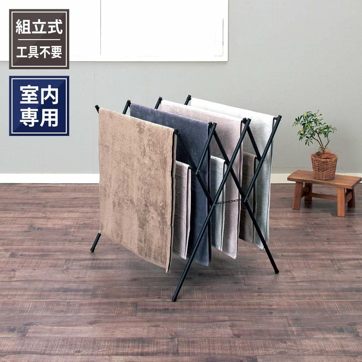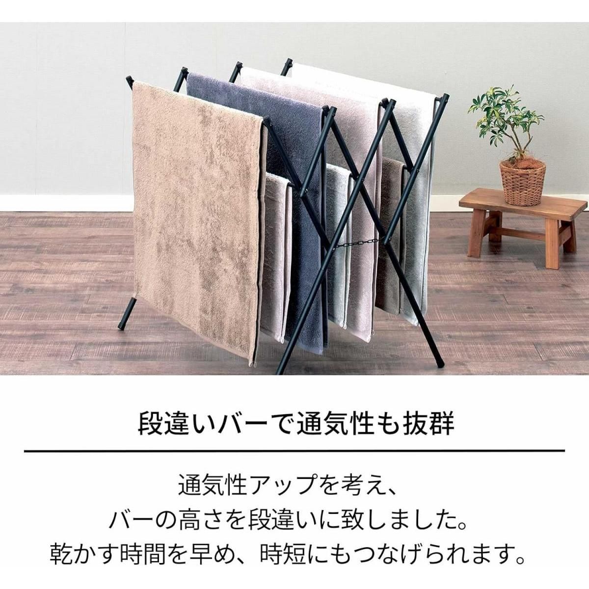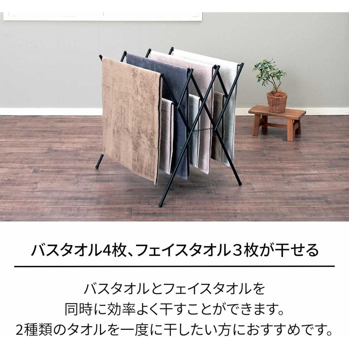 バスタオルとフェイスタオルを同時に干せるタオルハンガースタンドです。