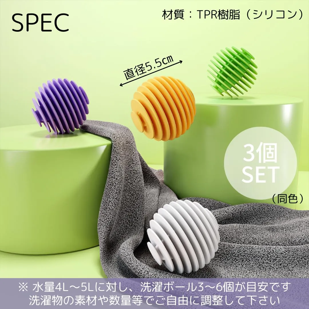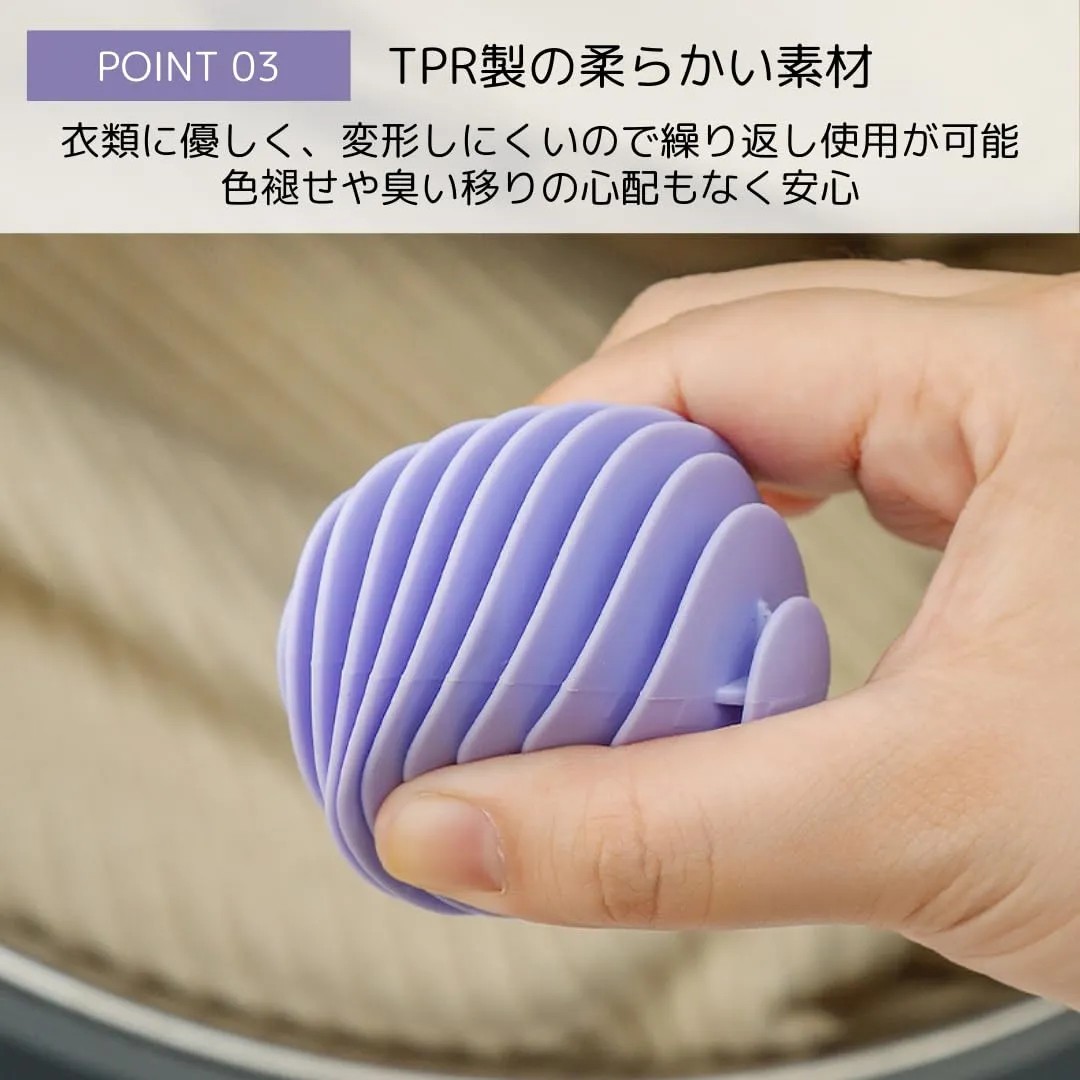 【絡まない!洗浄力アップのランドリーボール】洗濯物の絡みを防ぎ、摩擦でしっかり汚れを落とすランドリーボール3個セット。シワや静電気の発生を抑え、洗濯機・乾燥機で使える便利アイテム。フィン形状で衣類に優しく、ストレスフリーな洗濯を実現します。