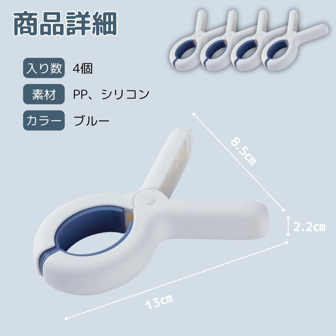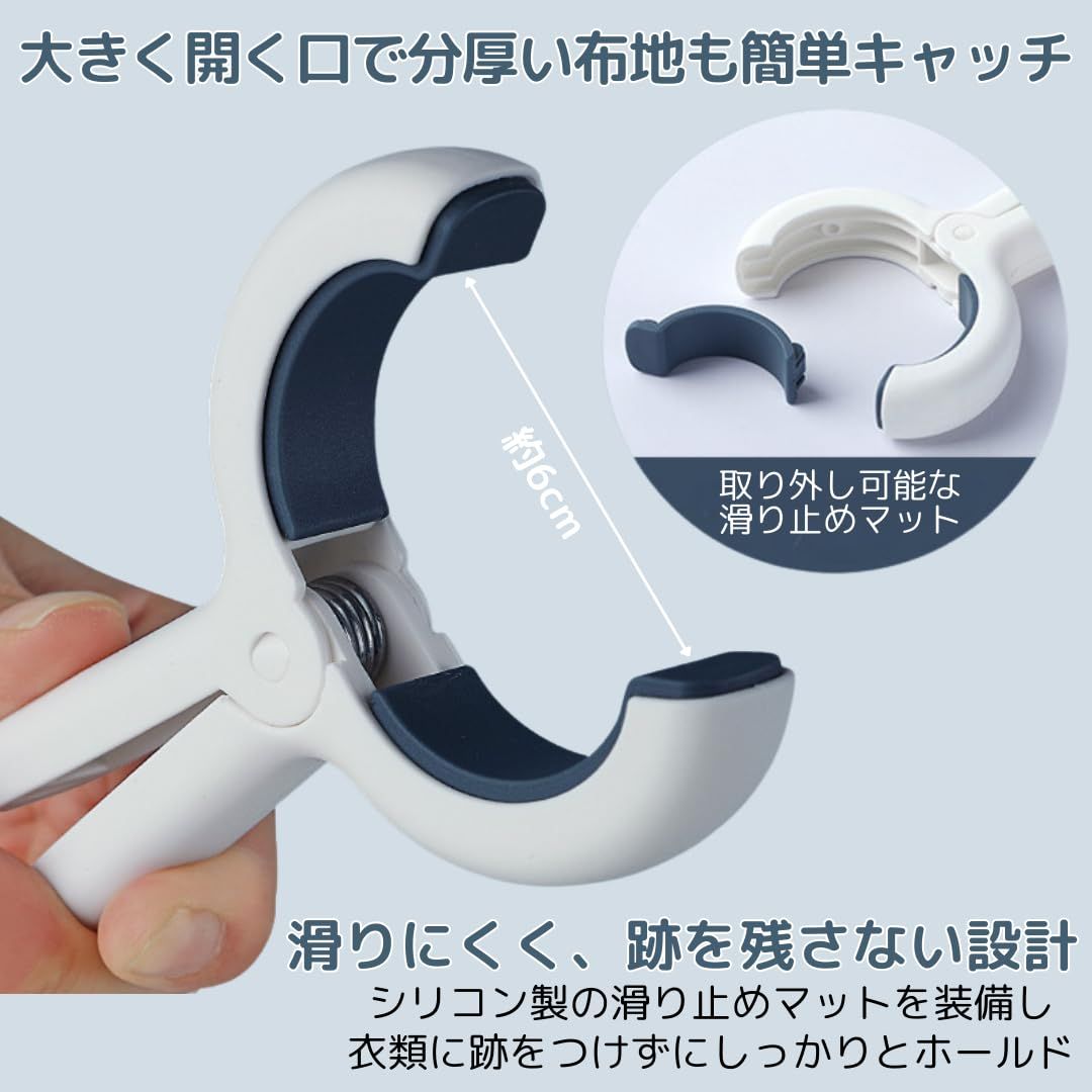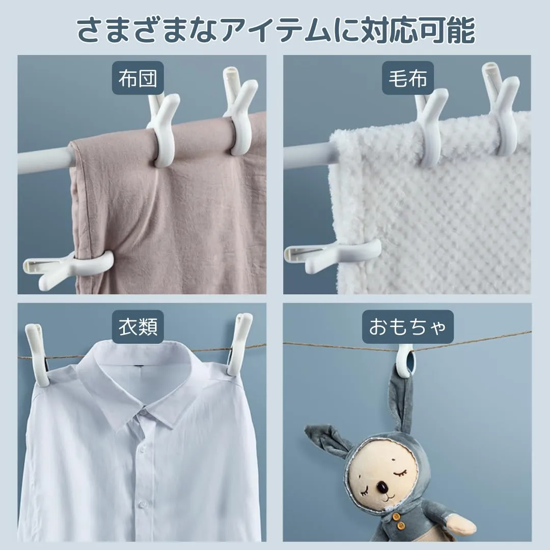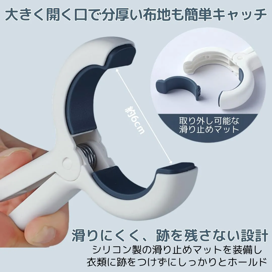 【大き目サイズで安心の固定力】大きく開く口で、布団やタオルケット、靴下やおもちゃまで幅広く対応します。6cmの開口部で分厚い生地もしっかり固定でき、ポールや竿にしっかりフィット。寝具やシーツ、カーテン、衣類のグリップに最適で、家庭でも旅行先でも使いやすい軽量設計。頑丈で持ち運びやすく、日常使いから旅行まで幅広いシーンで活躍します。