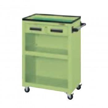商品名:サカエ パネルワゴン 天板皿型 引出し 背パネル付 グリーン PMW-5C