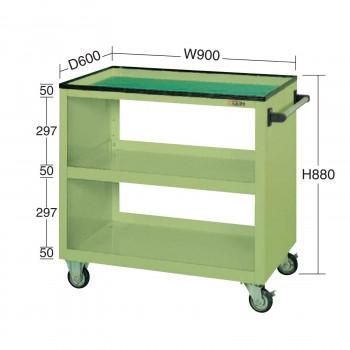 商品名:サカエ パネルワゴン 天板皿型 グリーン PGW-2C