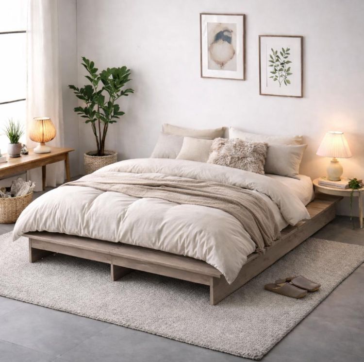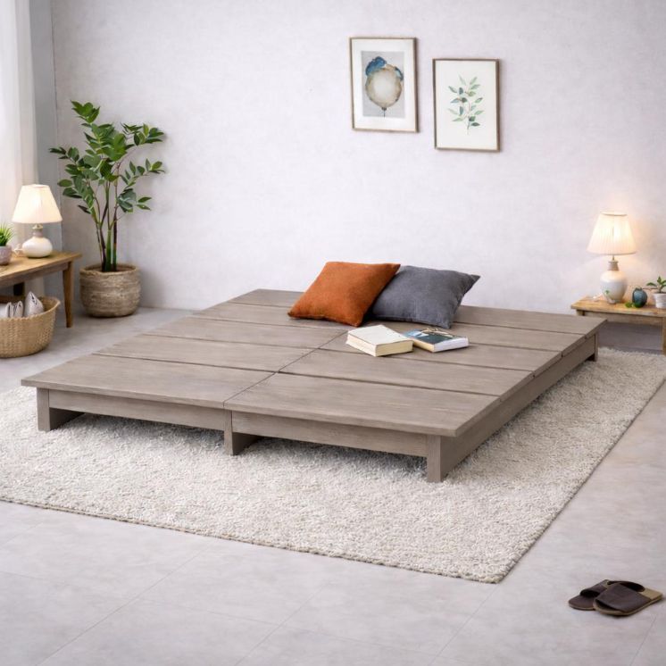 〈高さを抑えた心地よいロースタイル〉 床からの高さを抑えたロースタイル設計で、お部屋に圧迫感を与えません。 視線が低くなることで空間が広く感じられ、ワンルームや寝室にもすっきりと馴染みます。 床から約17cmの程よい高さで、立ち座りもしやすい設計です。