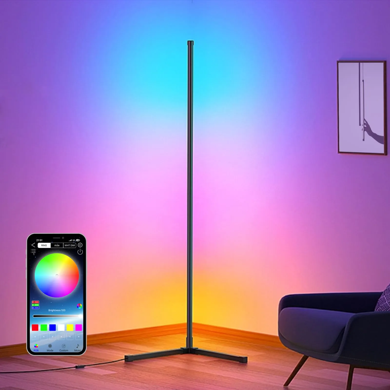 【狭いスペースにも置ける】従来型のフローリングライトに比べ、この細長いデザインはスペースを占有せず、部屋の角に置くのに適しています。組み立て後の全長は153cmで、細くても存在感があります。他の低品質の金属やPVCから作られたRGBランプと違い、当社のランプは優れたアルミニウム合金を採用しています。シンプルで滑らかなデザインは、インテリアとしても美しく、北欧スタイルの部屋や自然な和室にも取り付けることができます。