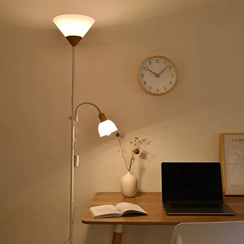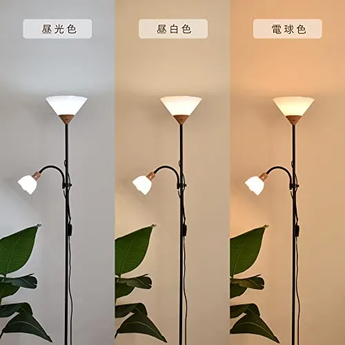 【こだわりの木目調デザイン】本体はシンプルながらも、温かみのある木目を基調としたアクセントがあるデザインで、ホッと落ち着く空間を演出します。温もりに加え、インテリアとしてお部屋に馴染みやすいフロアスタンドライトです。