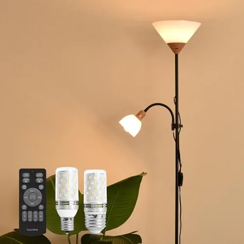 VENTOTA フロアスタンド ライト 2灯 フロアランプ 高さ178cm 調光調色 LED電球付き リモコン付き 間接照明 読書ライト 木材 寝室 リビング Pois BK 国内発送
