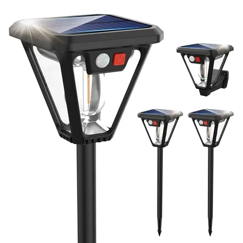ソーラーライト 屋外 ガーデンライト 4個セット 電球色 自動点灯 埋め込み 壁掛け センサーライト IP67防水 電気代0 人感センサー LEDライト ポールライト 3つ知能モード 太陽光発電 防災対策 屋外ウォールライト 庭先/表玄関/駐車場/花壇 設置簡単 ペンダントライト 防犯ライト 国内発送