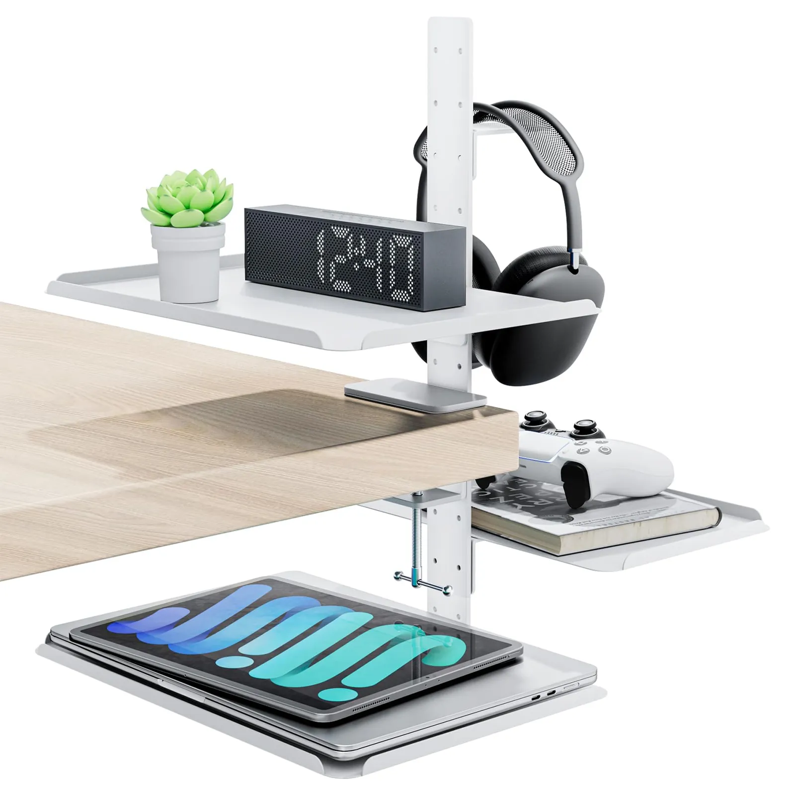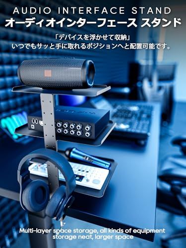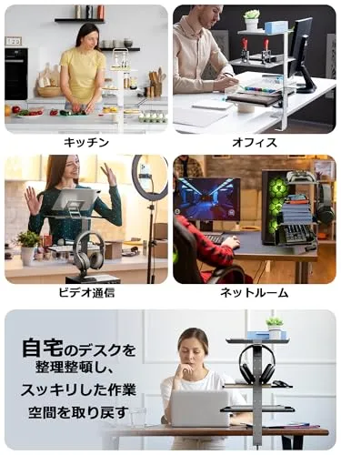 卓上収納トレー デスクサイド収納ラック 3段階 高さ調節 オーディオインターフェース スタンド 多用途デスク上置棚 省スペース テーブル デスク周り収納 スチール製 オフィス用品 事務用品 国内発送