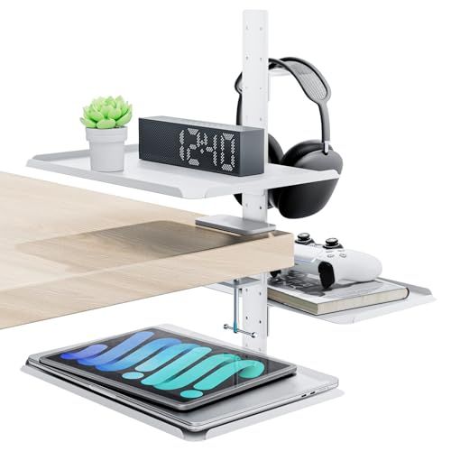 取付簡単優れた機能性: クランプ式トレイアームスタンド、穴あけ不要、デスクにあたる部分は保護パッドがあるため締めこんでも傷は付かない、6cmまでの天板の厚さに対応可能です。机の上収納、デスク下収納、小物がはいったり、軽いものをかけたりと多用途かなり利便性が高いです。机上スペースを広げるので作業が快適になり、作業スペースを圧迫せずに収納を増やせました。
