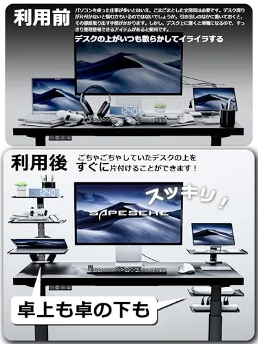 高品質スチール製: 専門家デザイン航空グレード鋼材採用厚めで剛性もしっかりとしていて強度があります。また、下部へカバン等を引っ掛ける所がある、磁石式の小物入れや、下側のフックがとても便利でヘッドホンスタンド・ヘッドホンフォルダーとして役に立ちます。オフィスデスク、オフィスワークテーブル、電動 昇降式デスクに対応する改良型