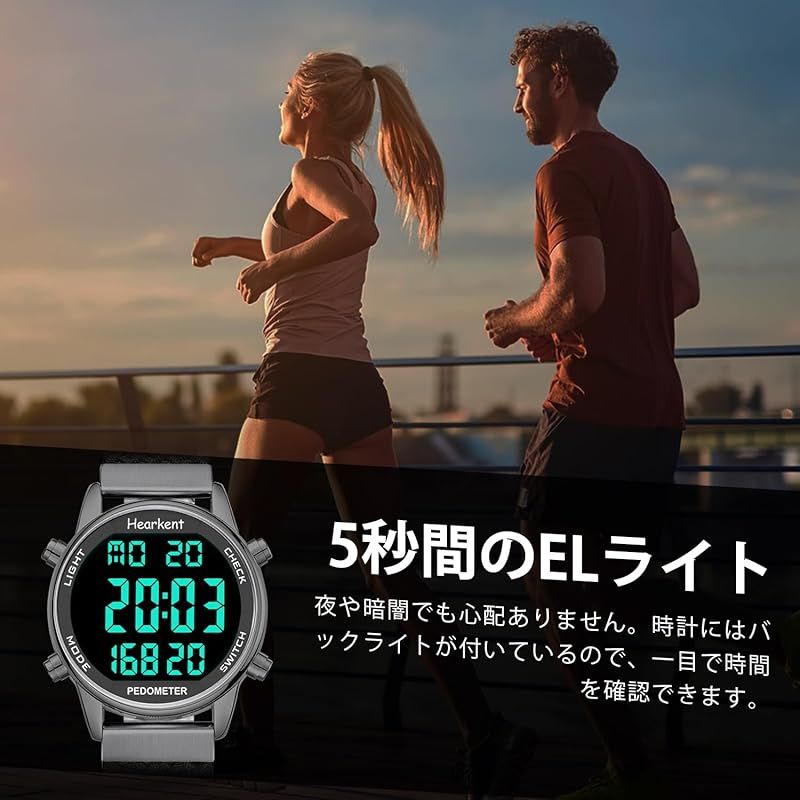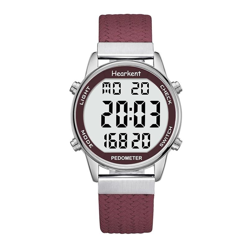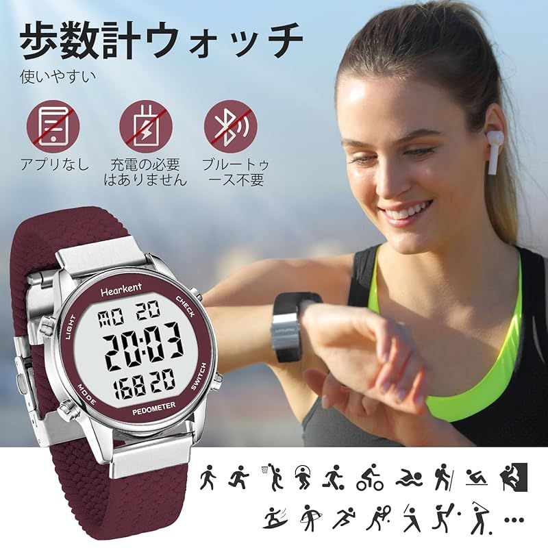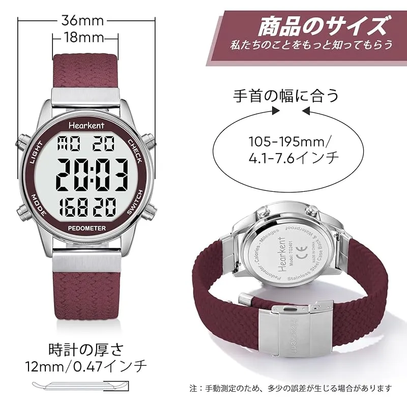 Hearkent レディース歩数計ウォッチ、防水、バックライト、歩数、走行距離、カロリー、カウントダウン、ストップウォッチ、アラーム、時間ごとのリマインダー、大型デジタルディスプレイ、無制限に調節可能なストラップ