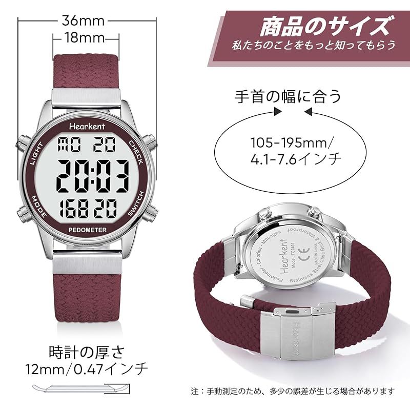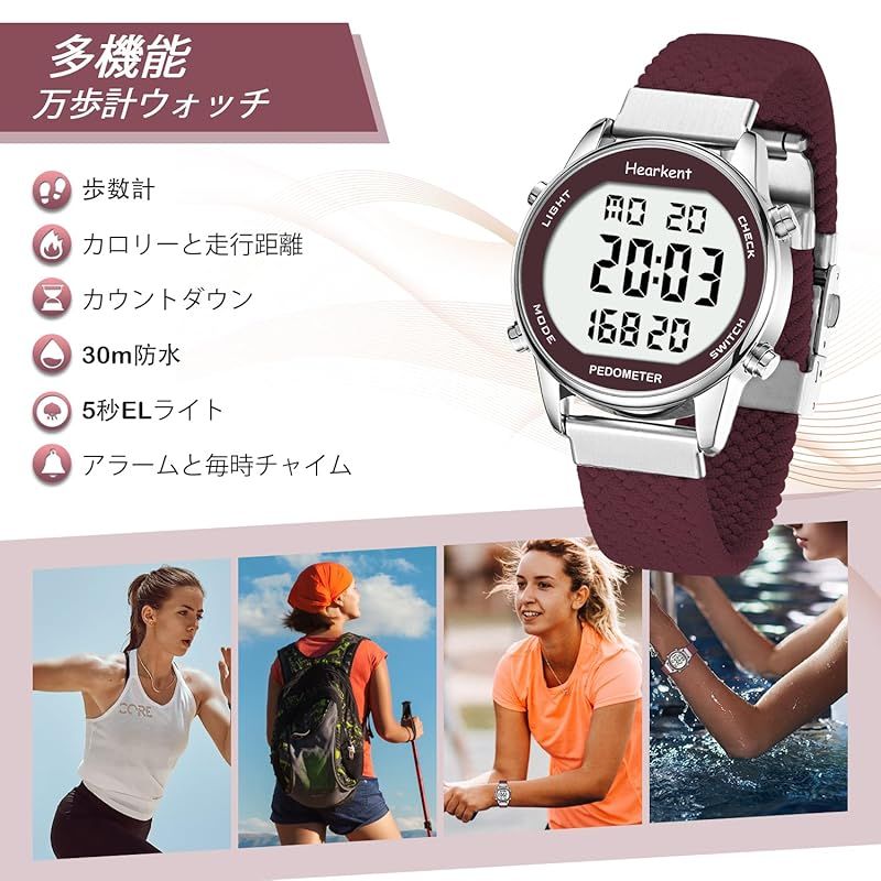 【商品詳細】 ブランド:Hearkent 商品種別:レディース腕時計 商品名:Hearkent レディース歩数計ウォッチ、防水、バックライト、歩数、走行距離、カロリー、カウントダウン、ストップウォッチ、アラーム、時間ごとのリマインダー、大型デジタルディスプレイ、無制限に調節可能なストラップ 製造元:Hearkent 商品番号:2401P 色:レッド 商品タイプ:シンプル