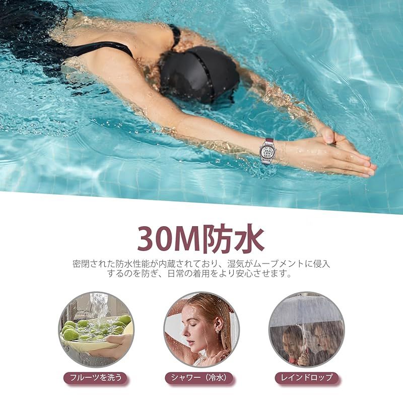 【豊富な機能】時間、日付、曜日、アラーム、時報チャイム、歩数計、カロリーカウンター、ストップウォッチ、カウントダウンなどの機能が搭載されています。最大 30 メートルの防水性を備え、ほとんどの日常的な水使用シナリオに対応できます。