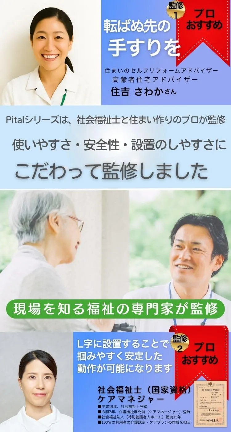 ■社会福祉士監修の安心設計 高齢者住宅アドバイザー監修のもと、安全性・操作性・設置しやすさを徹底追求。介護・福祉の現場を知る専門家が実用性を確認しています。
