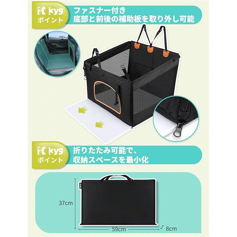 KYG 【新登場】ドライブボックス 大型犬用 空間拡大 後部座席用 ドライブペット 底板入り 型崩れしない 飛び出し防止リード付き 中敷き付き 折り畳み可能 滑り止め 犬車に乗せるグッズ キャンプ旅行 犬旅 全種犬 多頭飼い ブラック