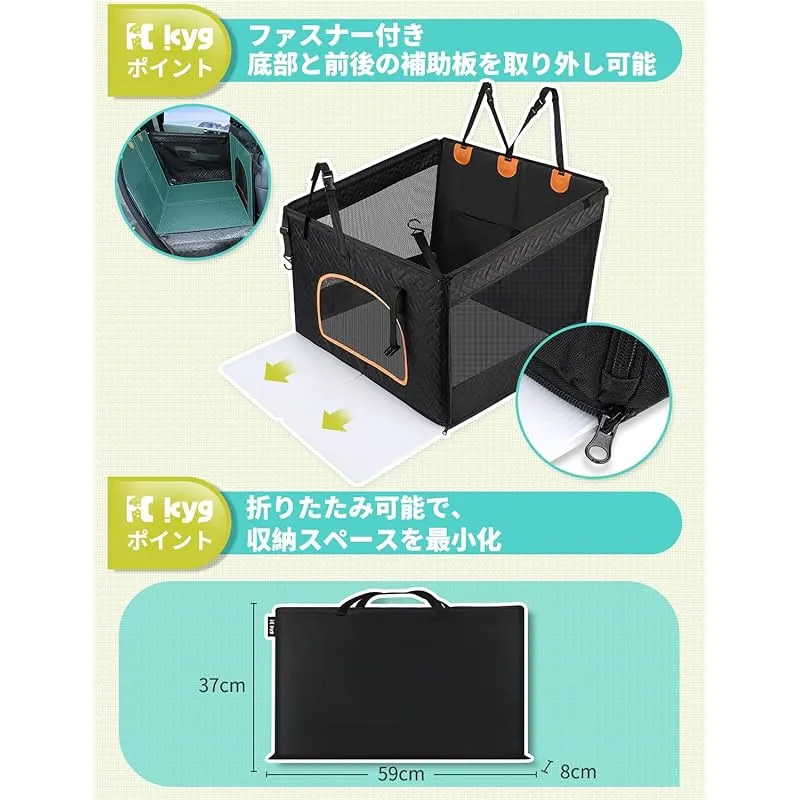 【商品説明】 KYG ドライブボックス 空間拡大 全種犬 後部座席用 ドライブペット 底板入り 型崩れしない 飛び出し防止リード付き 中敷き付き 折り畳み可能 滑り止め 犬車に乗せるグッズ キャンプ旅行 犬旅