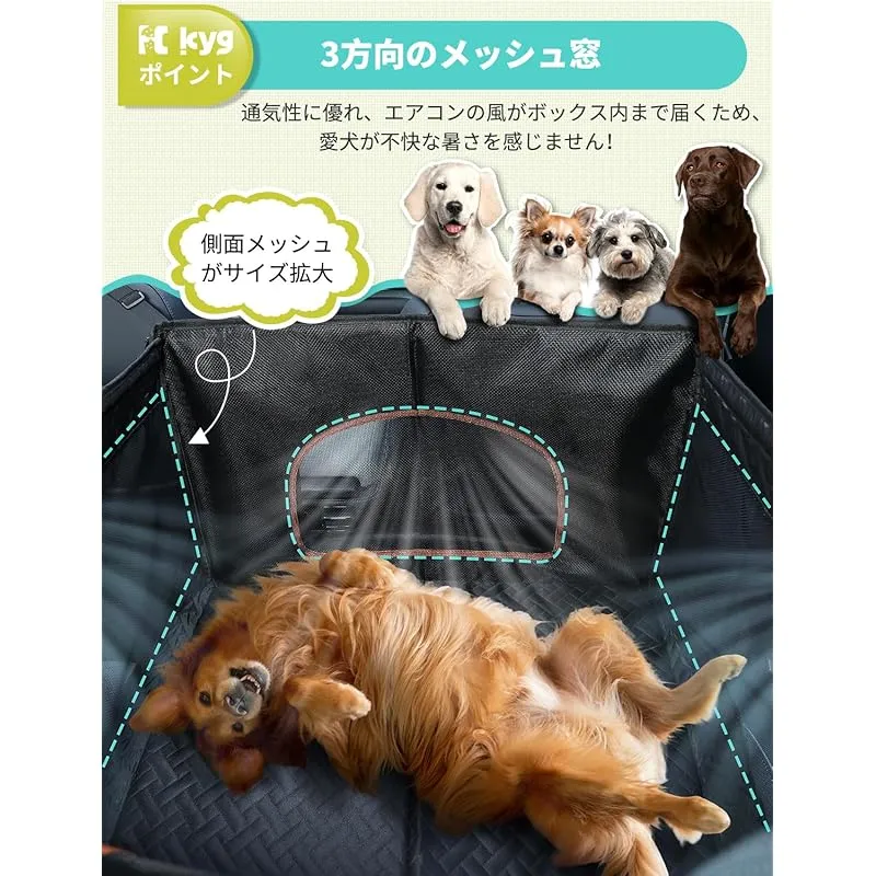 【飼い主とペットの絆サポート】3面のメッシュ窓で視線をつなぎ、ペットの不安を軽減。通気性抜群でエアコンの冷気も循環、一緒に後部座席に乗れる設計が旅のストレスを解消。