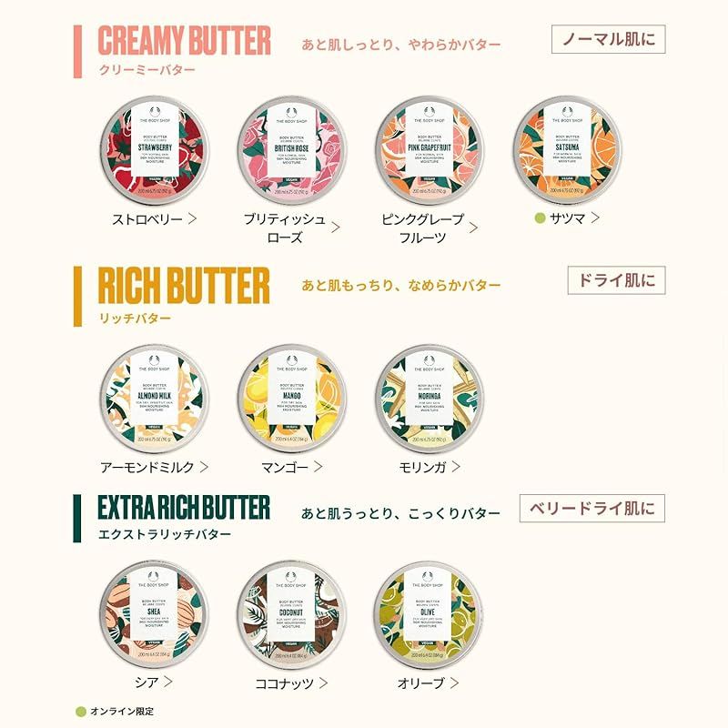【商品説明】 96%自然由来成分配合で、クリーミーで常温バターのようにとろけて肌に伸び、うるおうのにべたつかないテクスチャーの、イングリッシュローズエキス(整肌成分)を配合したボディクリームです。 肌をうるおいで満たし、輝くハリのある肌に導きます。 露を帯びた摘みたてのフレッシュなイングリッシュローズの香りが心穏やかにし、エレガントで優美な幸福感をもたらします。 保湿成分シアバター・セサミシードオイル配合で、乾燥して固くなった肌をうるおいで満たし、やわらかくなめらかな肌を長時間保ちます。 たっぷり使えるビッグサイズでご家族でのシェアにもおすすめです。 <テスクチャー・仕上がり> ・クリーミーで、常温バターのようにとろけるテクスチャー:クリーミーバター ・あと肌しっとりした保湿感 <お肌のタイプ> ノーマルスキン