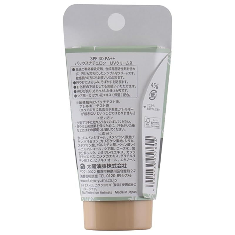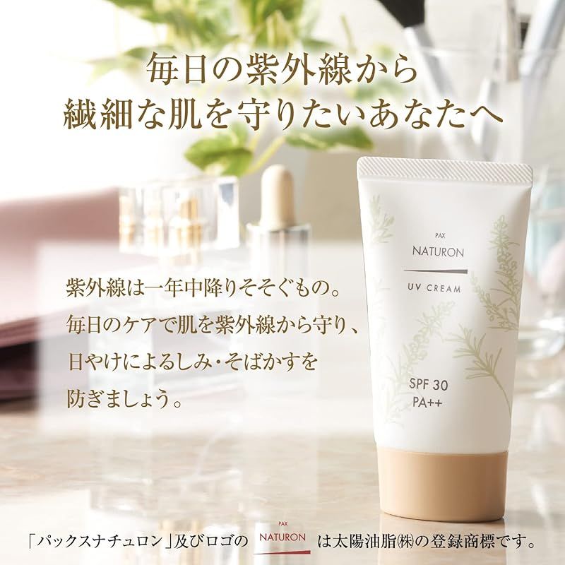 PAX NATURON(パックスナチュロン) UVクリーム 化粧下地 日焼け止め ( SPF30 PA++ / 45g ) 100%自然由来成分 紫外線 保湿 ( シミ /そばかす ) 太陽油脂