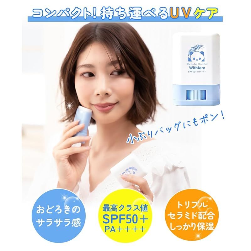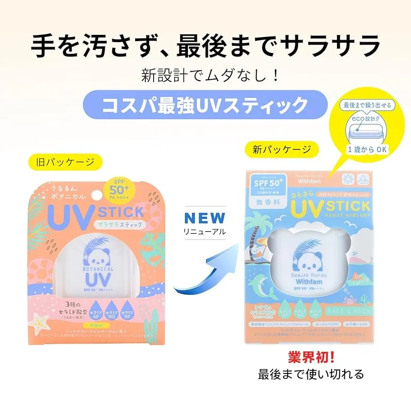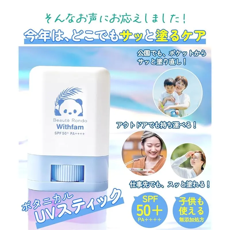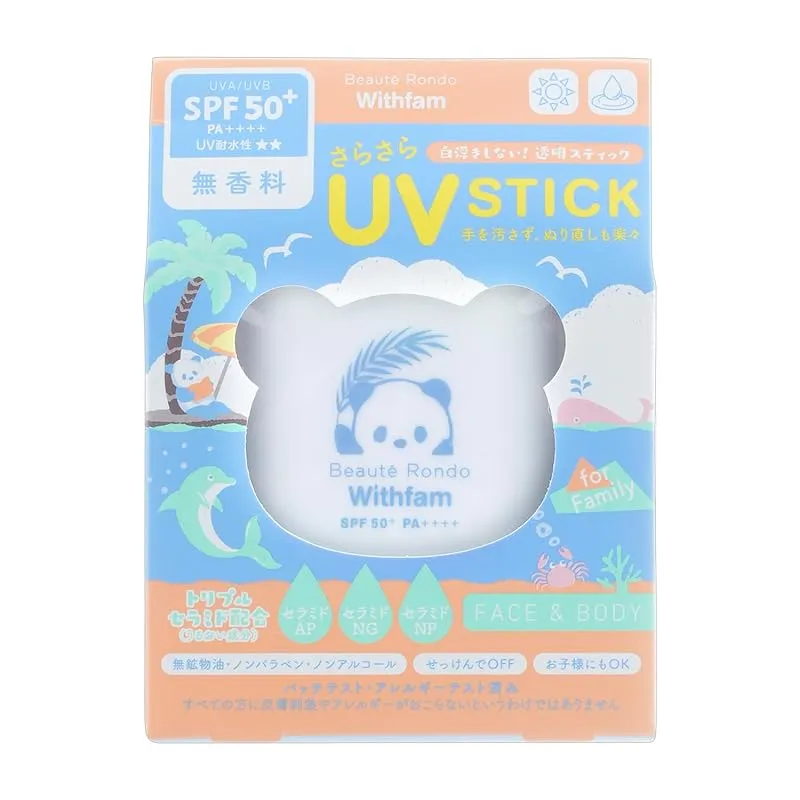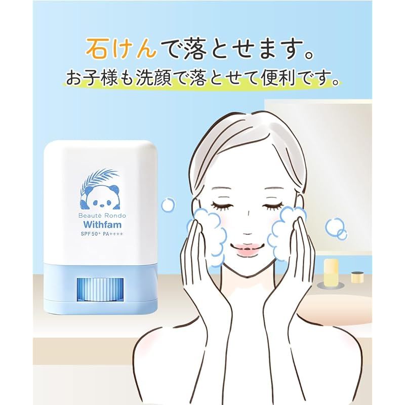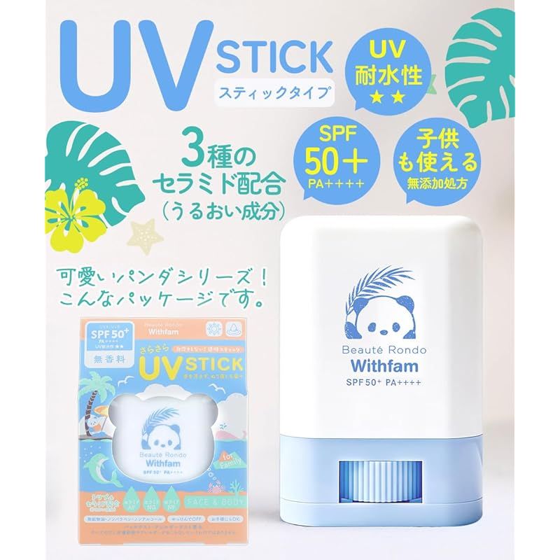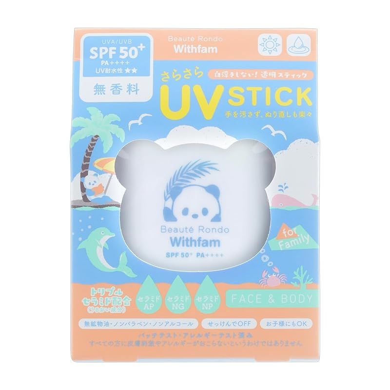 【リニューアル品】最後まで繰り出せる! ビューテロンドWithfam UVスティック(無香料、日本製、SPF50+、PA++++、UV耐水性★★、子供も使える)日焼け止めスティック 顔・体用 ギフト 15g (無香料タイプ)