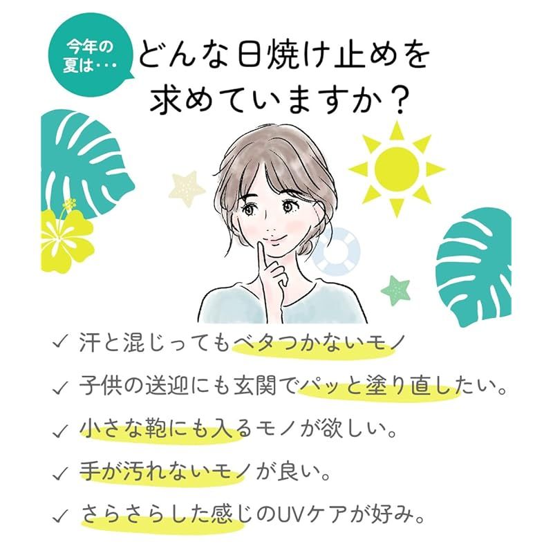 【商品概要】 携帯に便利なUVスティック 使い心地サラサラ UV耐水性★★ 日本製 SPF50+ PA++++ 11種類のポタニカル成分配合で、ママやキッズの肌をしっかりガードします。 香り:無香料 人工香料不使用 手を汚さず、塗り直しやすい。 ウォータープルーフなのに石けんで簡単にOFF