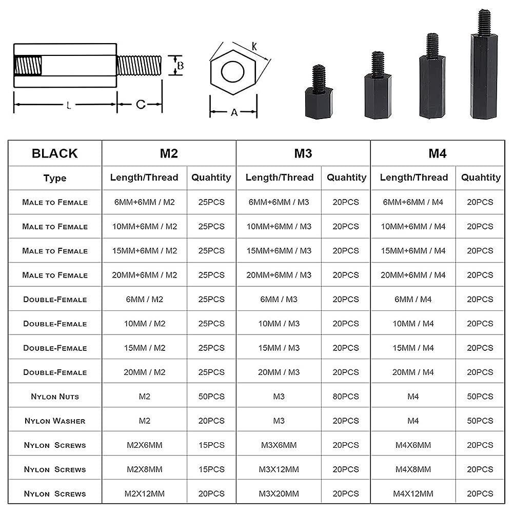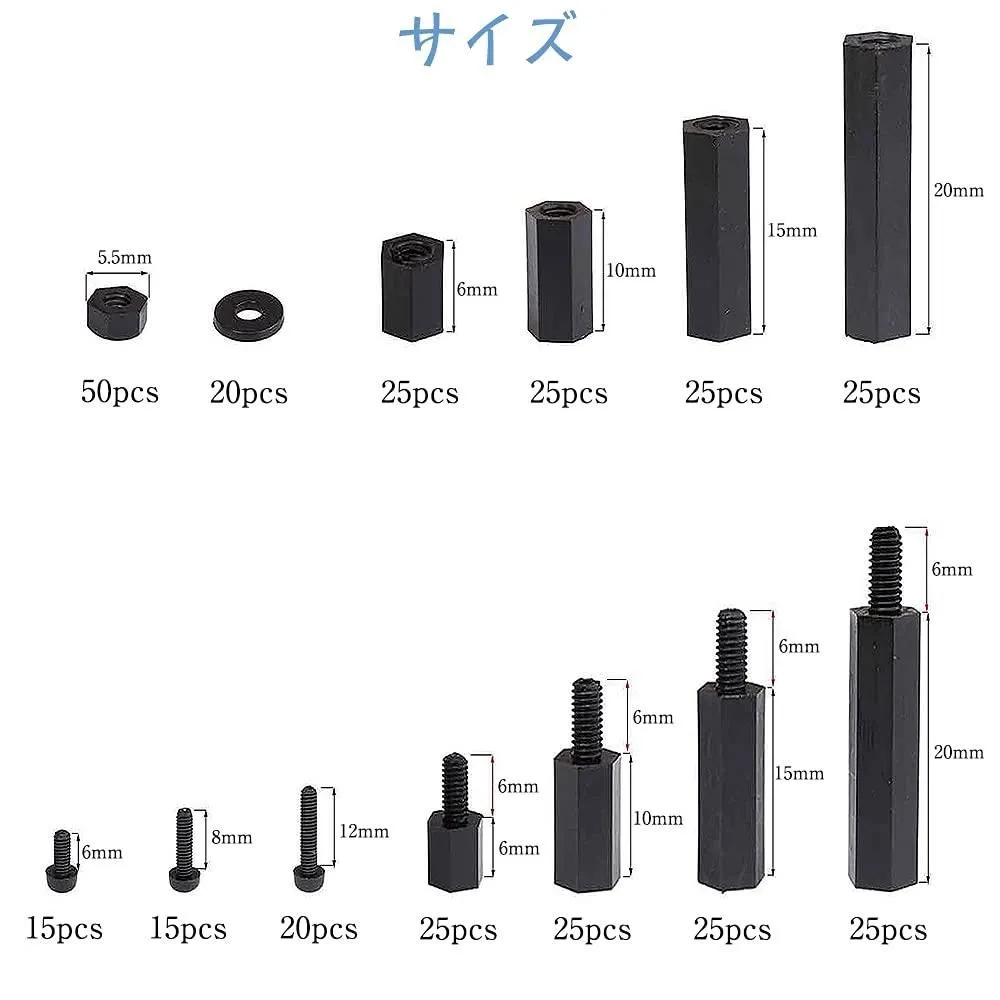 M2 M2 ナイロンネジナット 320個セット 六角スペーサー ネジセット スタンドオフ M2六角柱 六角ネジ 六角 ボルト ナット キット 基板固定/機械/修理/精密機械に 収納ケース付き ブラック