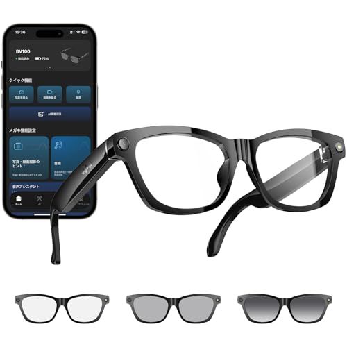 【新品】スマートグラス BV100 偏光サングラス スマートメガネ bluetooth 5.4 スピーカーとカメラ付き 800W像素 動画/写真撮影 Wifi自動転送 ENC通話ノイズ低減 レンズ交換可能 UV保護 録音 音声制御 同時通訳 AI画像認識搭載