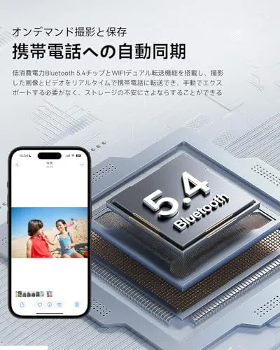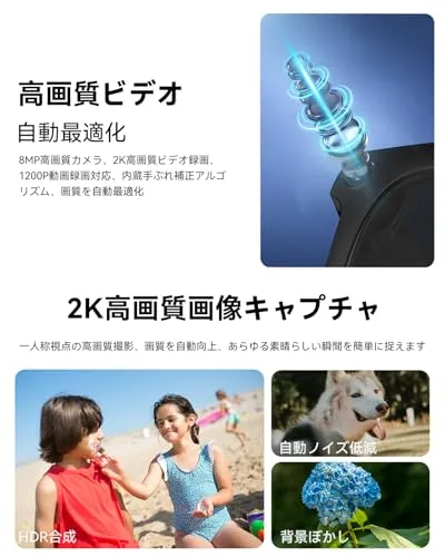 【800 Wハイビジョンカメラ1200 Pビデオ録画】第一視点ハイビジョン撮影は、自動的に画質を向上させ、素晴らしい瞬間を簡単に記録します。1200 Pビデオ録画と内蔵手ブレ補正アルゴリズムをサポートし、AIは画像品質を自動的に最適化し(暗くなったり背景がぼやけたりする)、マルチフレームノイズ除去とHDR合成を行きます。低消費電力のBluetooth 5.4チップとWIFIデュアル転送機能を搭載し、撮影した画像とビデオはリアルタイムで携帯電話に転送でき、手動でエクスポートする必要がなく、ストレージの不安にさよならすることができます。