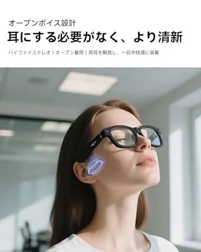 【開放式骨伝導型オーディオグラスと金属タッチ本体ボタン】骨伝導オーディオメガネ、開放式装着、両耳解放、スマートグラス純重量わずか45.7g、全天候快適装着、聴く楽しみを満喫!HiFiレベルの音質で、クリアに聴くことができ、通話と聴取モードを自由に切り替えることができます。ミラー脚の両側にある金属タッチボタンは音楽モードと音量を調節することができ、ミラー脚の両側の上にある本体ボタンは写真撮影/録画/録音/電話切断/AIウェイクアップなどの機能を制御することができます。220mAh大容量バッテリー、2ピン磁気吸引Type-C急速充電、急速充電をサポート、充電電流帯経路管理300mAh。日常待機23H、音楽を聴く時間は5H、連続録画は40分、満充電は1Hしかかかります。