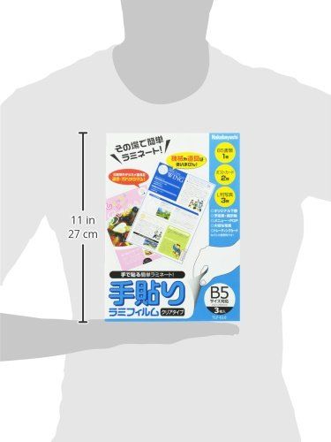 キーワードは、「簡単」「便利」「きれいに保存」。手貼りラミフィルムは、機械や道具を使わず、フィルムを張り合わせるだけで掲示物やカードなどをしっかり保護。 ・機械を使わず、即ラミネートできる! ・会社・学校・ご家庭の、掲示物や回覧に便利! ・空気をシャットアウトするから、写真・インクジェット写真の長期保存に! ・印刷物やデジカメプリントを、退色・汚れ・水から守る! 手貼りラミフィルム、B5サイズ対応タイプ。 ・パック枚数:3枚