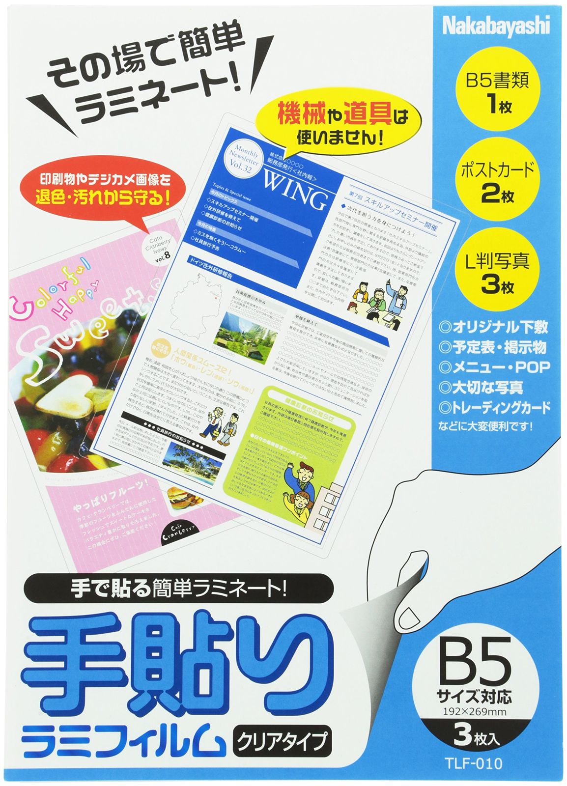 新品 ナカバヤシ 手貼りラミフィルム B5サイズ対応 TLF-010 [オフィス用品]