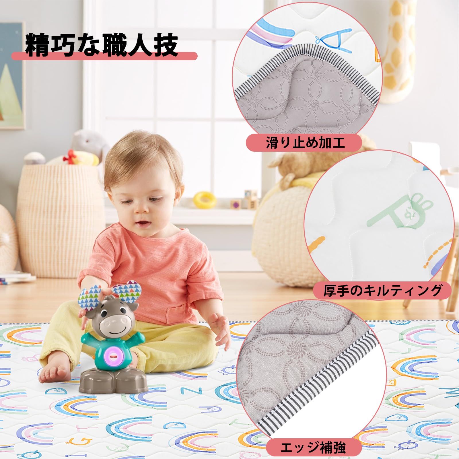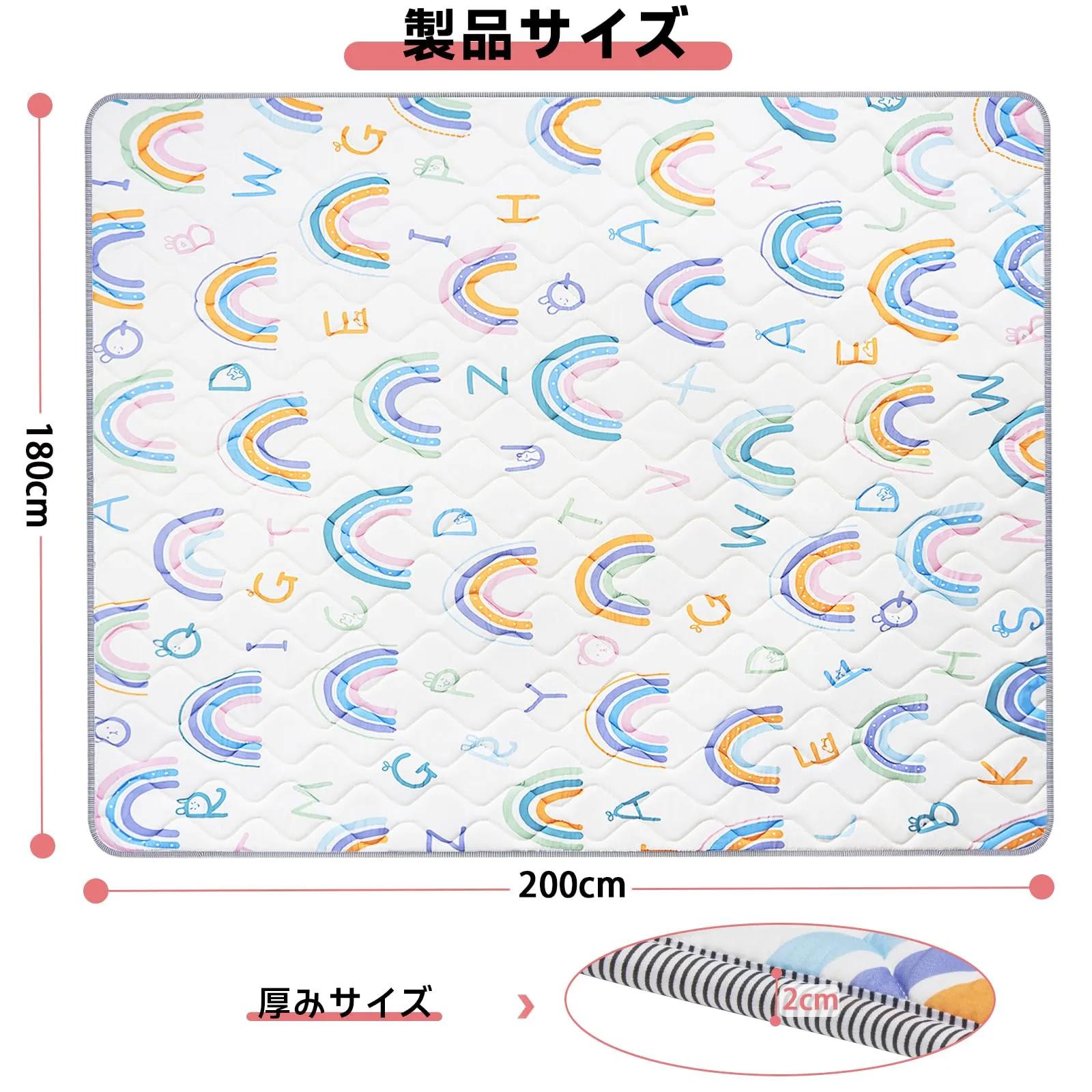 新品 BQKOZFIN プレイマット ベビーマット 180x200x極厚2cm 折りたたみ 安全検査済み 大判 赤ちゃん 子供ゲームパッド 赤ちゃんプレイマット 滑り止め 防音 安全素材 一枚入り(180x200x2cm,虹の図案)