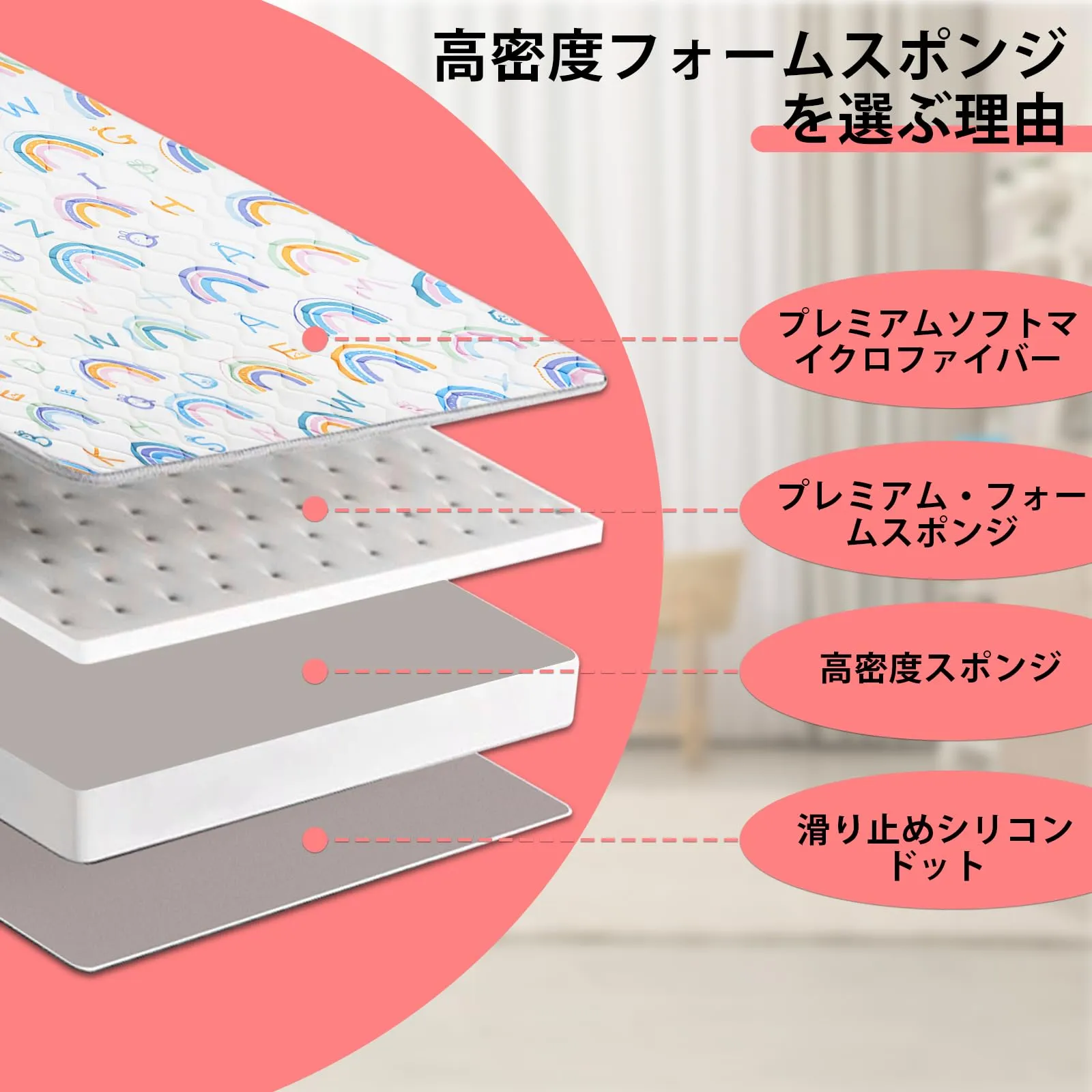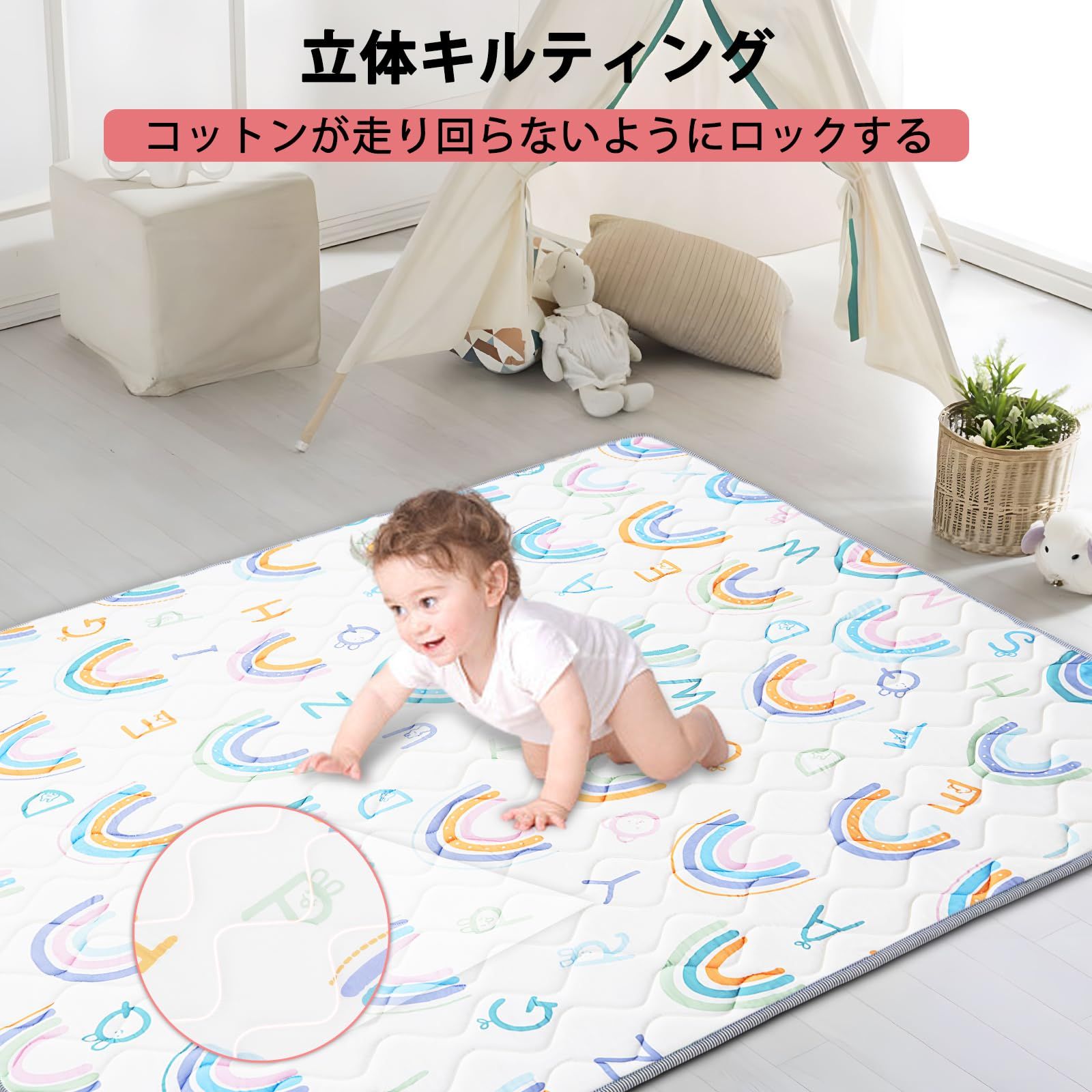 【強力な滑り止め多重保護】このベビーパッドの第3層は、1平方メートル当たり100グラムのシリカゲル滴塑性滑り止め生地を用いて作られ、キルティングは6.75センチ格子を位置決めしている。整然とした美しさをするだけでなく、赤ちゃんがゲームマットの上で遊んでいる間の安全を確保し、意外な滑りを効果的に回避することが重要です。