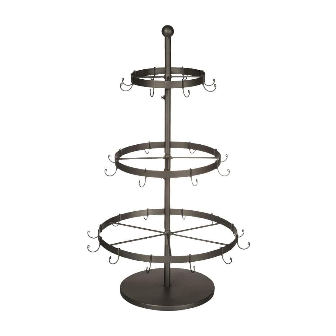 重厚で風合いのあるアイアン製ハンギングオーナメントホルダー。オーナメントを飾り付けたり、アクセサリーホルダーとして活躍します。主張しすぎないシンプルな構造で、段ごとに回転するので、掛けたものが取りやすく実用的な面も。ご自宅やショップ用の什器として装飾をお愉しみください。