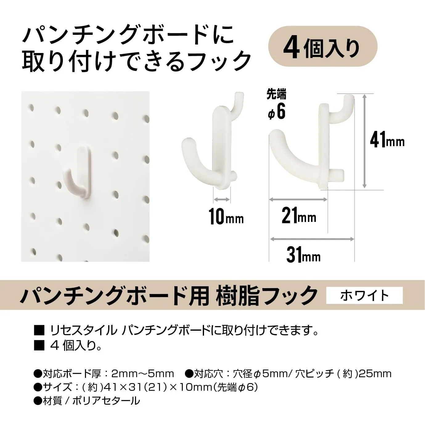 新品 JEJアステージ(JEJ Astage)リセスタイル パンチングボード用 樹脂フック 小物 整理 W10×D31×H41 12個セット