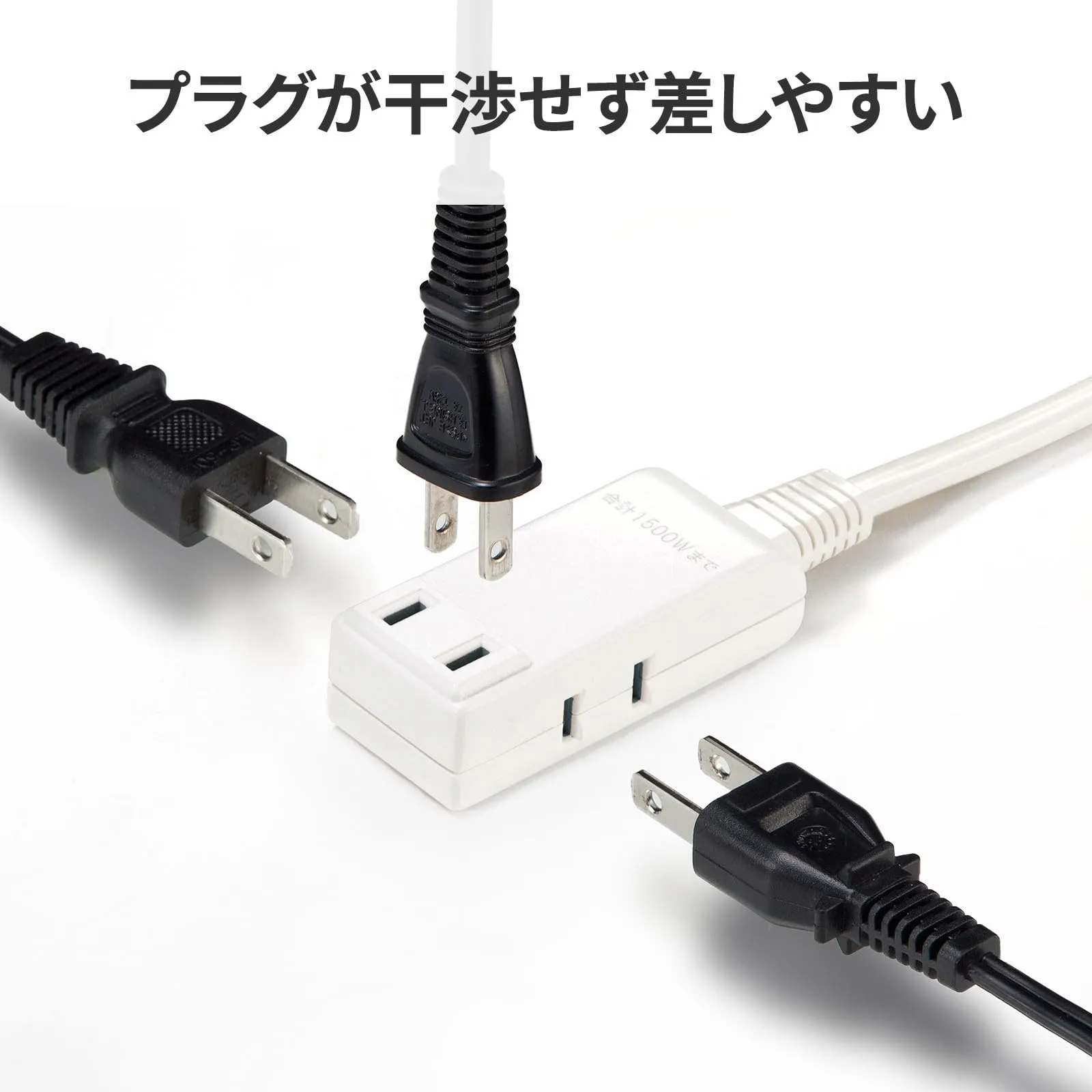 ●プラグが干渉せず差しやすい3個口仕様です。タップの上面・側面に差込口がレイアウトされており、プラグが互いに干渉しにくいので、無駄なく差すことができます。