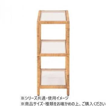 透明感が美しい取り外し可能なガラス、スチールフレームに巻いた天然ラタンの相性がぴったりなガラスシェルフ。オープンタイプの為壁面に設置するだけでなく、お部屋の間仕切りとしてもおすすめ。リビングやベッドサイドだけでなく、ディスプレイ台としても活躍します。フレームの天然ラタンはどんな家具にも合わせやすいデザインになっております。